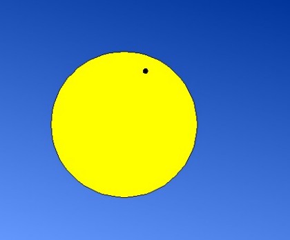 Die Venus wird am Mittwoch Morgen als kleiner Punkt vor der Sonne zu erkennen sein. Die Grafik zeigt die Größenverhältnisse.