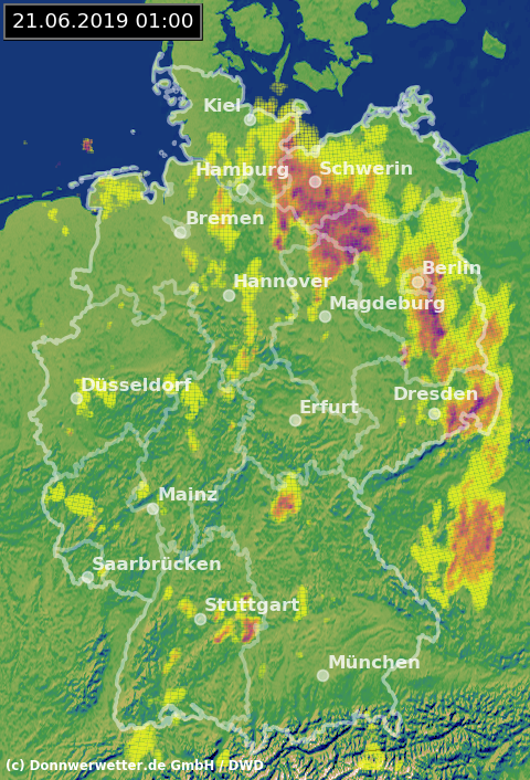 Radarbild von Freitag, 21.06.2019 um 01.00 Uhr