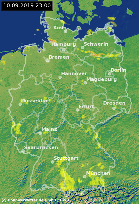 Radarbild von Dienstag, 11.09.2019 um 23.00 Uhr