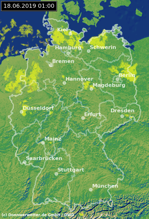 Radarbild von Dienstag, 18.06.2019 um 01.00 Uhr