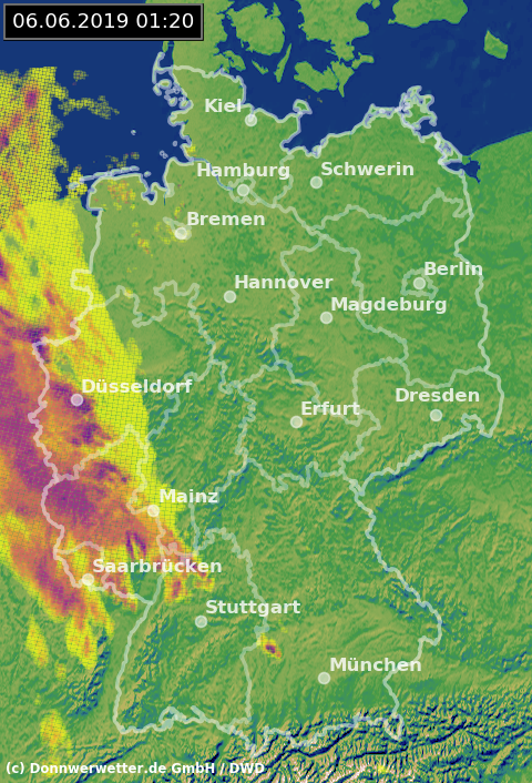 Radarbild von Donnerstag, 06.06.2019 um 01.20 Uhr