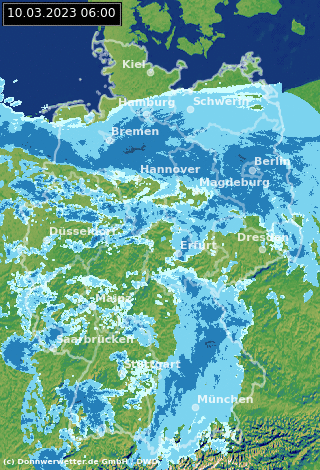 In den übrigen Landesteilen fallen die Niederschläge bei momentanen Temperaturen um 6 bis 11 Grad als Regen.