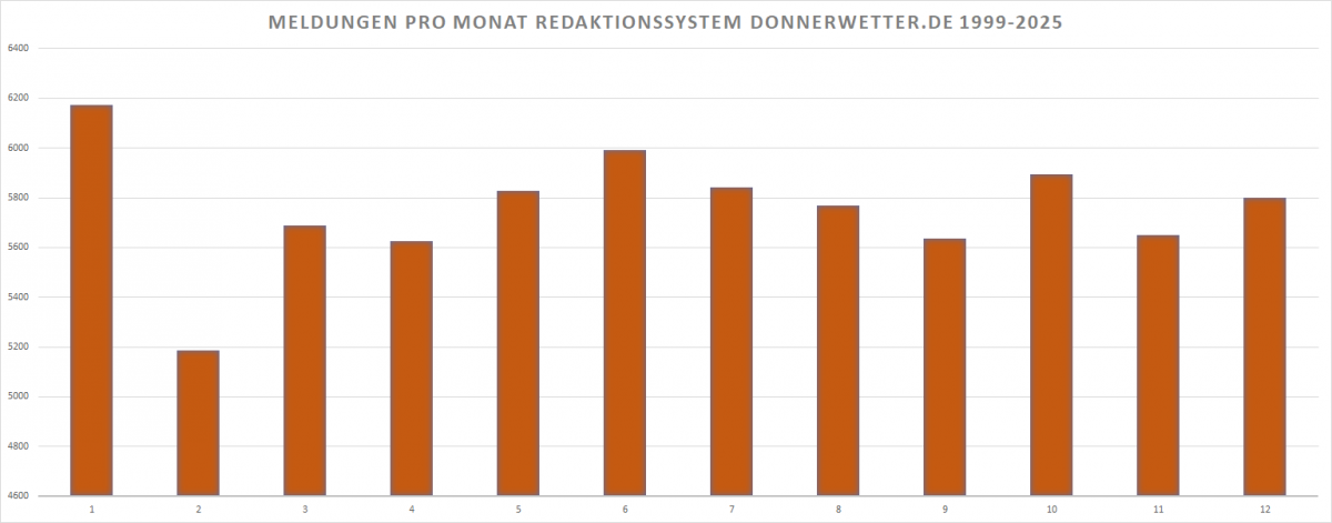 Der Januar, gerne mal für einen Wintersturm oder eine prekäre Glättelage gut, zeigt sich mit knapp 7.000 Beiträgen als beitragsstärkster Monat des Jahres.