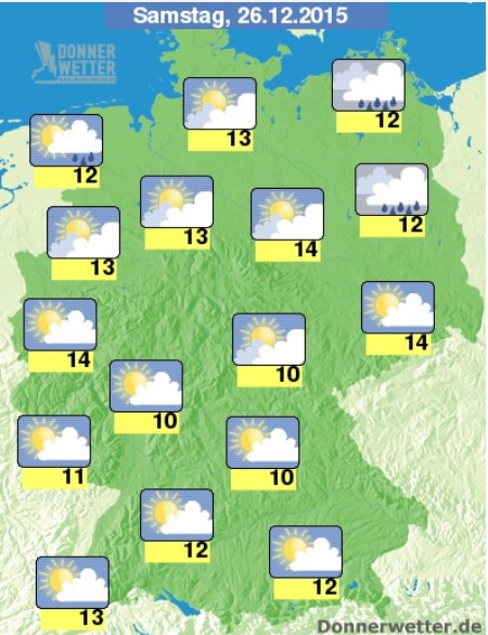Und wieder wird es in den meisten Teilen Deutschlands nichts mit weißen Weihnachten! Die Prognose für Heiligabend aktuell: Wind, Regen, dichte Wolken bei Höchstwerten um 7 bis 11 Grad.