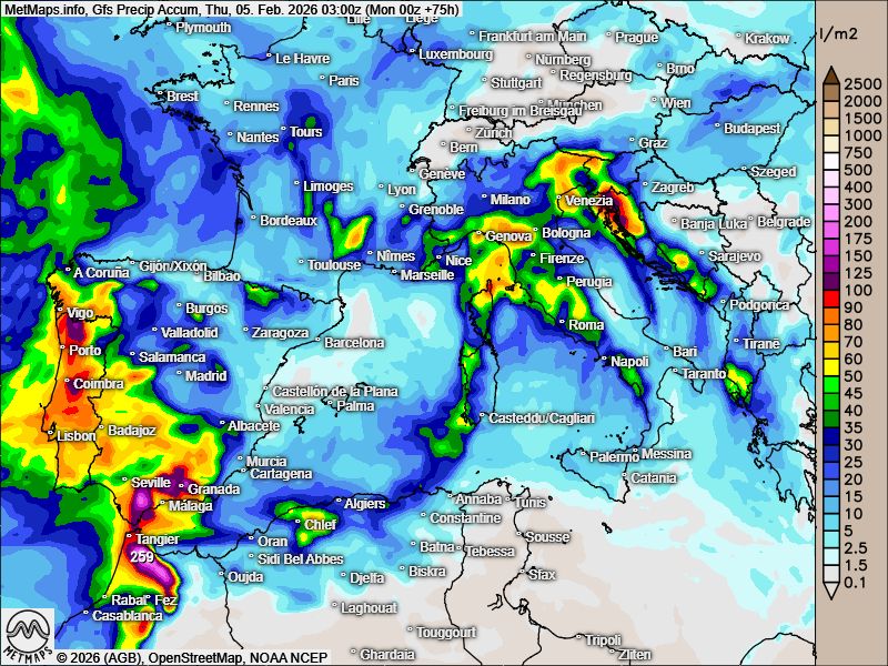 Ein ungewöhnlich weit nach Süden verlagerter Jetstream verläuft derzeit über Nordafrika. Dadurch werden Tiefdruckgebiete vom Atlantik über Portugal hinweg nach Süden gelenkt. In der Folge kommt es in Portugal sowie in Teilen Südspaniens und Marokkos zu teils extremen Niederschlägen.