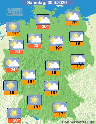 Bei den Höchstwerten bewegt sich wenig, um 16 Grad in Nordbayern und 24 Grad im Rheinland.