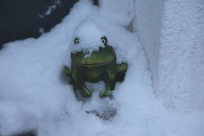 Bald gibt es wieder Eis und Schnee in Deutschland. Zumindest unser Wetterfrosch an der Haustür im Wetterpark in der Eifel hat seine Freude.