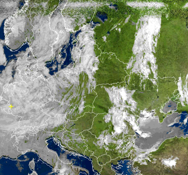 Unter meist dichten Wolken verharren weite Landesteile an diesem Donnerstag noch einmal - wie auch das heutige Satellitenbild eindrucksvoll zeigt.