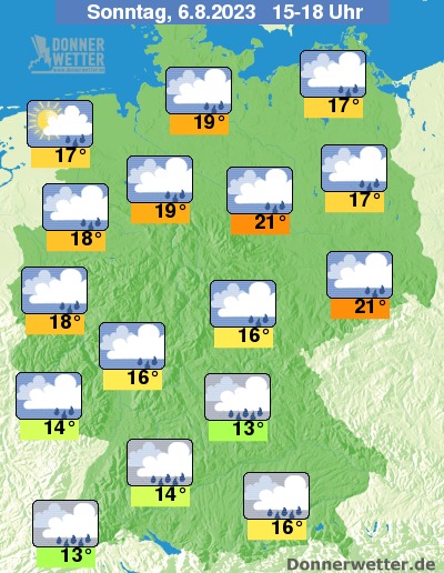 Nicht nur herbst- sondern möglicherweise sogar rekordverdächtig, denn der 06.08.2023 hat das Potential, der kälteste Sommertag 2023 zu werden. Wenig Sommerambitionen gibt es auch weiter nördlich, hier sind im Tagesverlauf aber immerhin Temperaturen um 17 bis 21 Grad möglich.