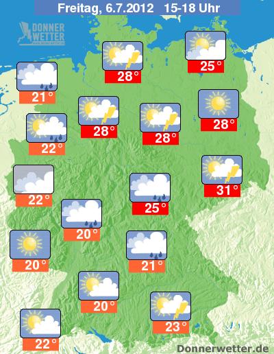 Im Westen ist schon kühlere Luft angekommen, so dass in Nordrhein-Westfalen, Rheinland-Pfalz und Baden-Württemberg häufig nur noch Temperaturen um 22 Grad erreicht werden. In Ostdeutschland wird es mit Werten an der 30-Grad-Marke dagegen noch einmal richtig heiß.