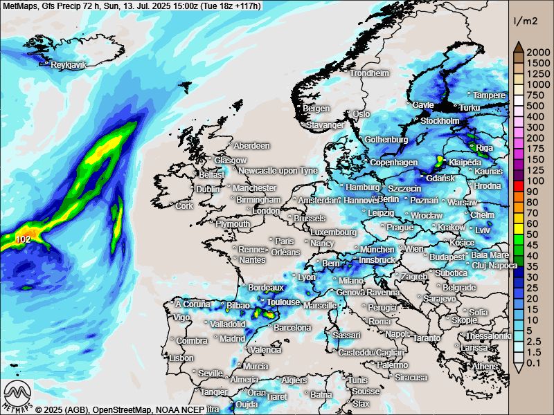 Die Hochdruckzone über Westeuropa trennt die Westwindzone bis nach Skandinavien auf, was für ein "eingefahrenes Wettermuster" über einen längeren Zeitraum spricht.