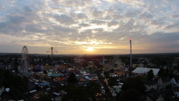 Die Aufnahme zeigt die Kulisse von "Pützchens Markt", einem der größten Volksfeste Deutschlands, nach welchem sich das heutige Unglück ereignete.