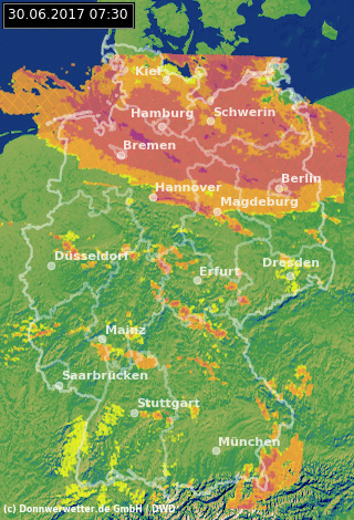 Die nächsten Stunden haben weiterhin jede Menge Regen im Gepäck. Nachdem gestern bereits im Osten und Südosten Deutschlands Regenmengen von teils über 120 l/m² niedergingen, konzentriert sich das Regengebiet aktuell vor allem auf die nördlichen und nordöstlichen Bundesländer.