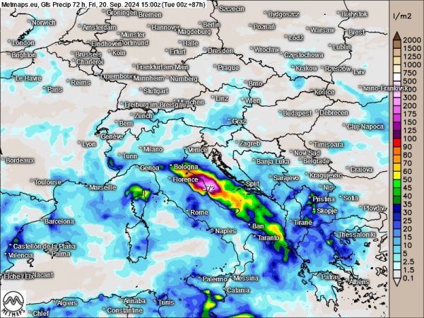 Niederschlagsmengen bis 400 l/m² an der Adriaküste erwartet.