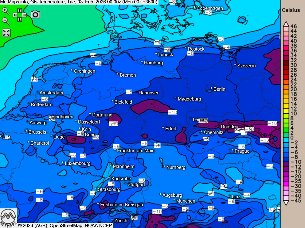 Nach einem insgesamt zu kalten Januar ist laut aktueller Modellläufe auch in den ersten Februartagen keine nennenswerte Milderung in Sicht.
