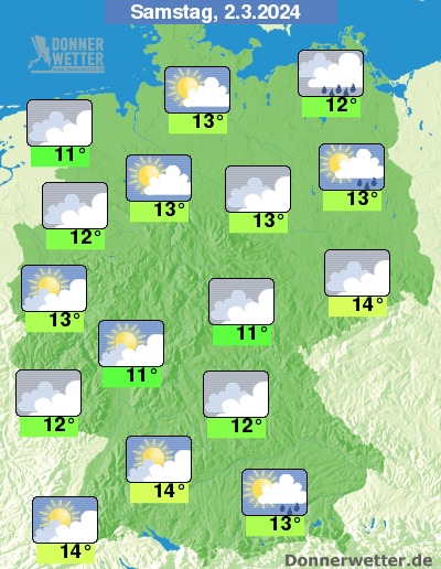 Auf Frühlingskurs bleiben dabei die Temperaturen: Sie erreichen am Nachmittag Höchstwerte um 11 Grad im Rhein-Main-Gebiet und 14 Grad in Ostsachsen.