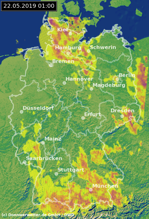 Radarbild von Mittwoch, 22.05.2019 um 01.00 Uhr