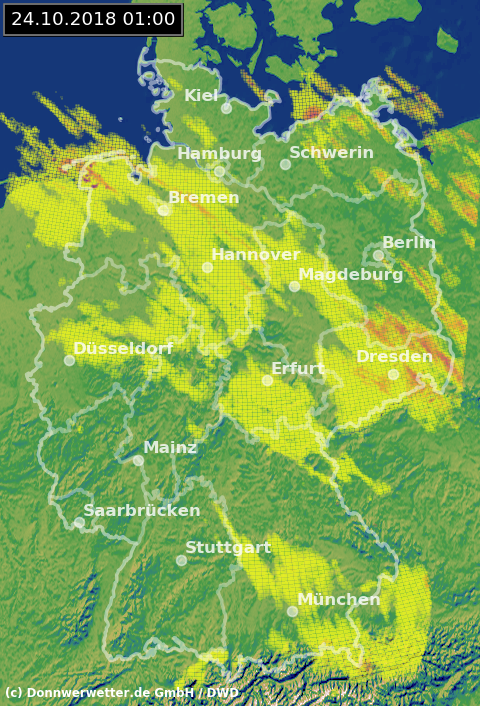 Radarbild von Mittwoch, 24.10.2018 um 01.00 Uhr