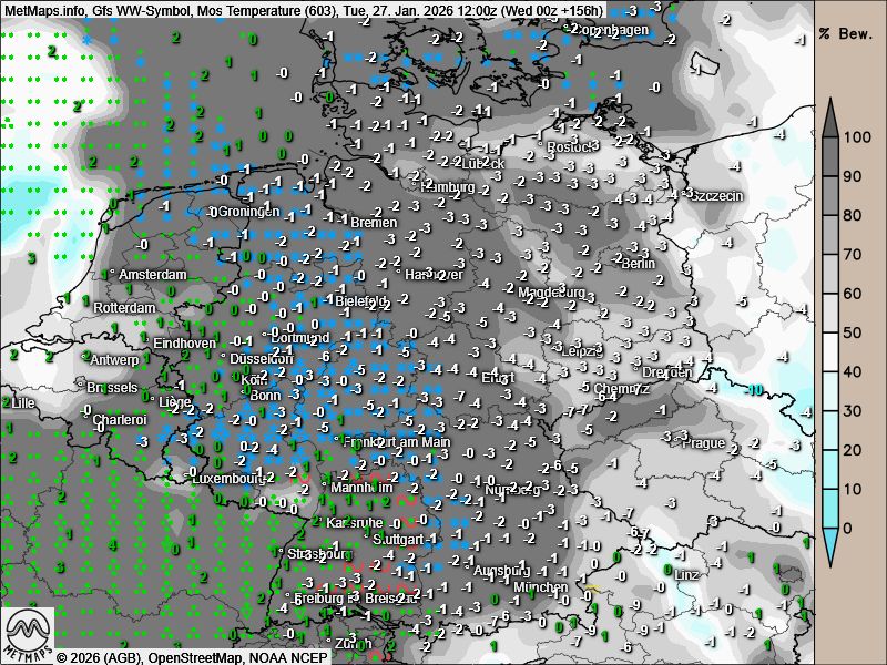 Vor allem das Wettermodell GFS berechnet eine markante Grenzlage über Mitteleuropa. Diese könnte Schnee, Eisregen und Regen bringen – begleitet von Temperaturunterschieden von teils über 10 °C in Mitteleuropa.