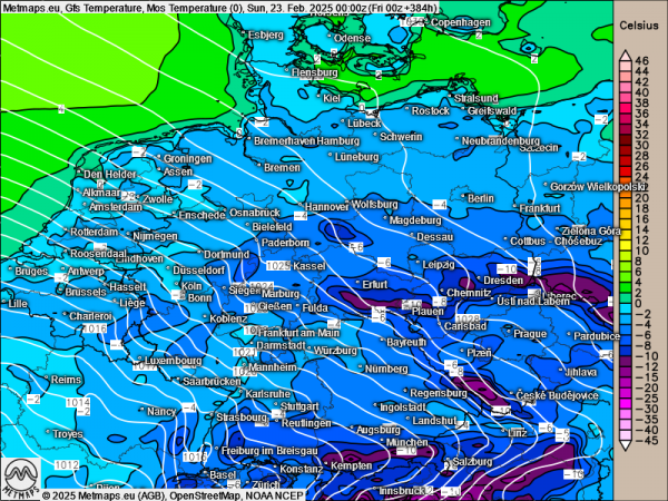 Die Temperaturen bleiben am Wochenende und über weite Teile der kommenden Woche niedrig und bewegen sich zumeist im einstelligen Plusbereich. Ende kommender / Anfang übernächster Woche deutet sich nach jetzigem Stand zwar eine Milderung an, dieser folgt aber bereits zur Wochenmitte (19.02.) wieder ein kräftiger Temperatursturz. Gute Bedingungen also für die weitere Ausbreitung von Viren aller Art.