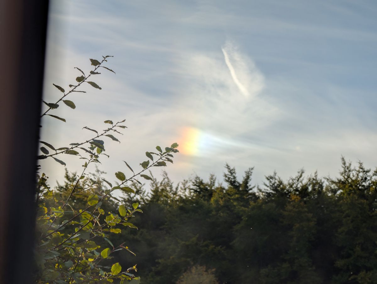 Die Fotos zeigen Nebensonnen und Zirkumzenitalbogen gestern Abend über dem donnerwetter.de-Wetterpark in der Eifel. Ein Video findet Ihr auf Facebook und TikTok.