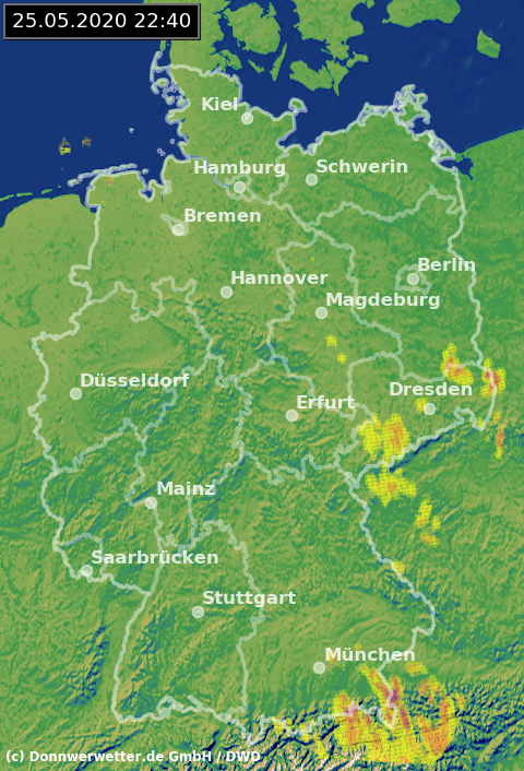Radarbild von Montag, 25.05.2020 um 22.40 Uhr
