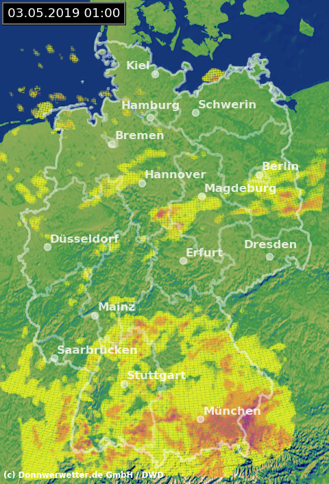 Radarbild von Freitag, 03.05.2019 um 01.00 Uhr