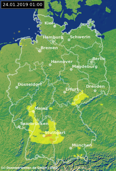 Radarbild von Donnerstag, 24.01.2019 um 01.00 Uhr