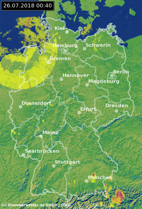 Radarbild von Donnerstag, 26.07.2018 um 00.40 Uhr