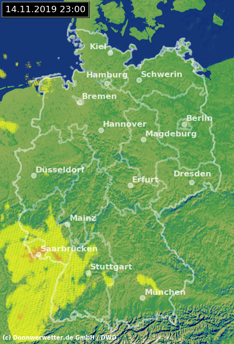 Radarbild von Donnerstag, 14.11.2019 um 23.00 Uhr