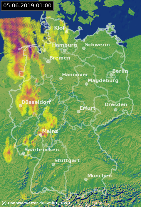 Radarbild von Mittwoch, 05.06.2019 um 01.00 Uhr