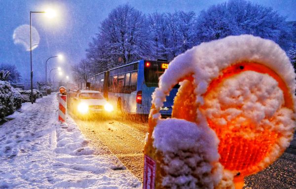 Vor allem die Verhältnisse auf den Straßen könnten morgen vielerorts brenzlig und schwer berechenbar werden: Wo an der einen Stelle die Fahrbahn noch trocken war, kann ein paar Meter weiter Schnee oder Graupel die Fahrt behindern.