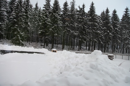 Die schönen Bilder dienen der Erinnerung an das letzte Jahr. Damals türmte sich der Schnee an unserem Wetterpark in der Eifel auf über 50 cm Höhe auf. In Verwehungen wurden mehr als 1 m Schneehöhe gemessen.