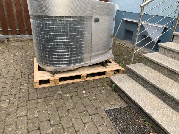 In unserem ersten Teil stand die Wärmepumpe noch da, gut verpackt und auf die Installateure wartend.