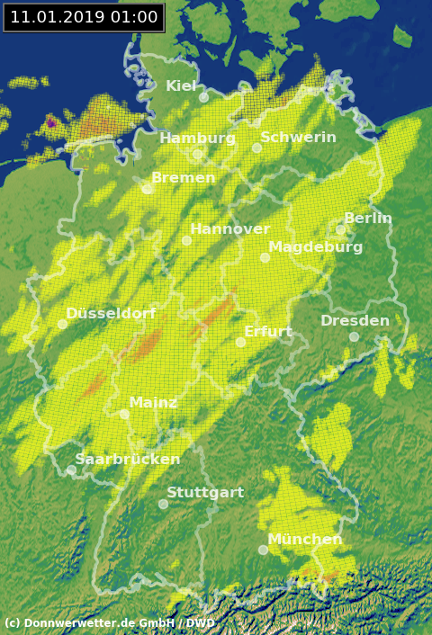 Radarbild von Freitag, 11.01.2019 um 01.00 Uhr
