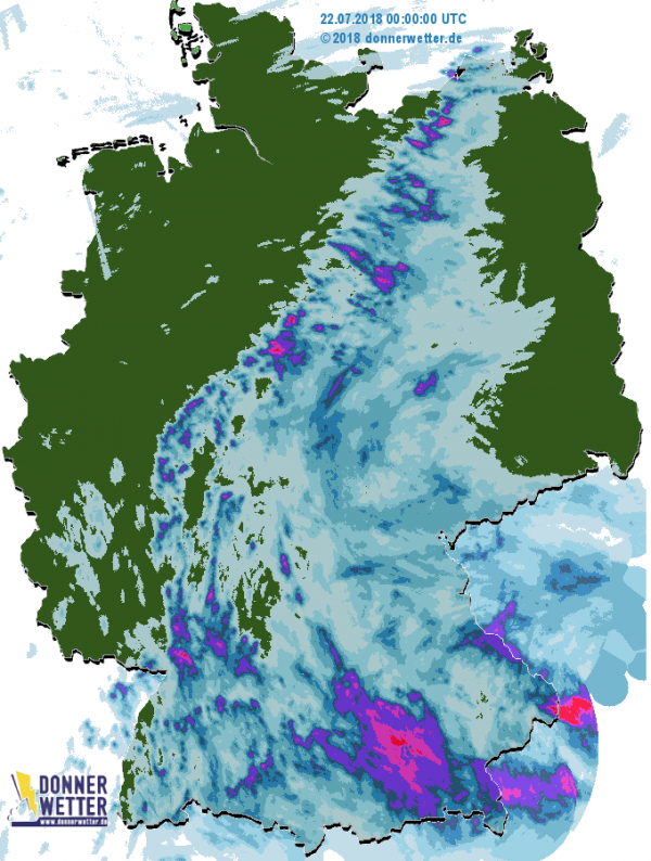 Wie man auf dem Radarbild unschwer erkennen kann, kam im Süden ordentlich Regen vom Himmel was sich über den Laufe des Tages in Richtung Osten vergrößert hat.