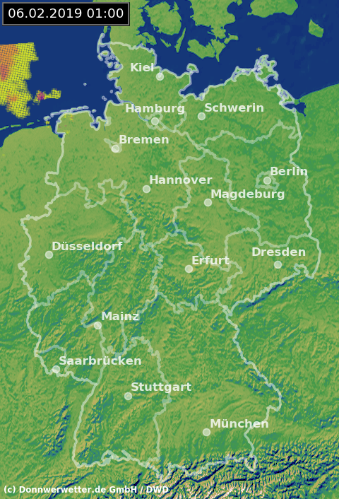 Radarbild von Mittwoch, 06.02.2019 um 01.00 Uhr