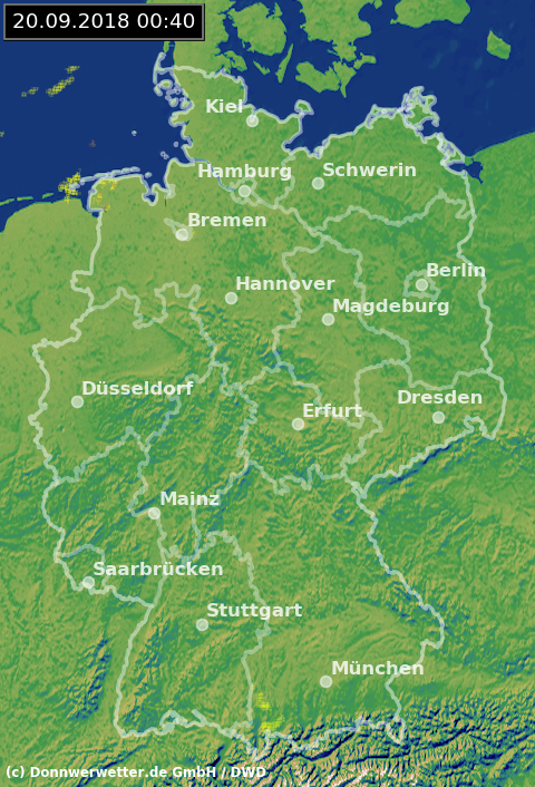 Am Samstag ziehen letzte Regengüsse nach Tschechien und Österreich ab. Gleichzeitige tauchen nachmittags im Nordwesten neue auf. Die Niederschlagsmengen liegen zwischen 1 und 10 Liter pro Quadratmeter, sonst bleibt es überwiegend niederschlagsfrei, wird aber deutlich kühler als an den Vortagen.