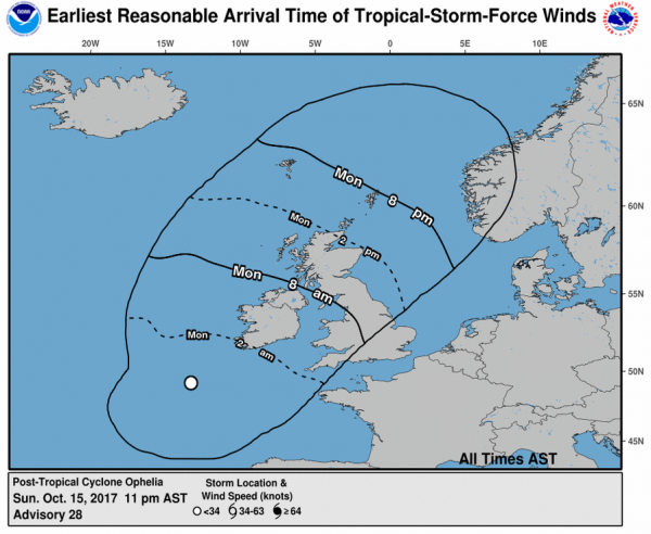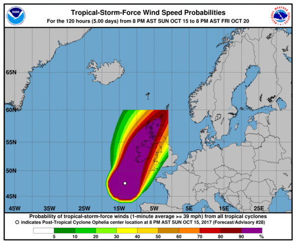 Es dauert nun nicht mehr lange bis der ehemals Kategorie-3-Hurrikan "Ophelia" die Insel erreichen wird. Es wird starker Regen und Orkan erwartet. In Irland ist man Sturm gewöhnt, aber einen Wirbelsturm gab es dort seit Beginn der Wetteraufzeichnungen noch nicht.