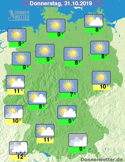 Wie bestellt darf sich am Reformationstag vor allem der arbeitsfreie Norden und Osten Deutschlands über goldenes Feiertagswetter mit viel Sonnenschein freuen. Im Süden und Westen wird zwar gearbeitet, der Tag bringt aber auch hier einen weitgehend freundlichen und trockenen Sonne-Wolken-Mix. Nur an den Alpen und am Oberrhein sind die Wolken zeitweise dichter und es können Schauer fallen.
