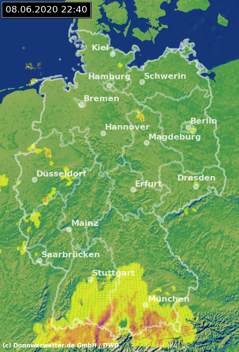 Radarbild von Montag, 08.06.2020 um 22.40 Uhr