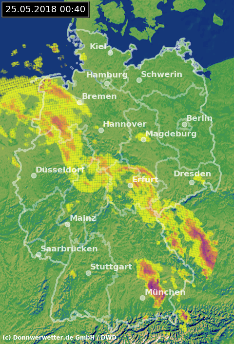 Radarbild von Freitag, 25.05.2018 um 00.40 Uhr