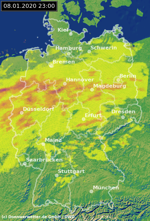 Radarbild von Mittwoch, 08.01.2020 um 23.00 Uhr