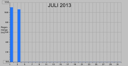 Die abgebildete Graphik zeigt die Regenmengen im Westen Deutschlands im Juli 2013. Nur in den ersten Tagen regnete es noch etwas. Seitdem herrscht Trockenheit. Bis zum 26./27. Juli könnte es trocken bleiben - im ganzen Land.