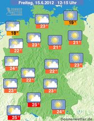Derzeit scheinen für das Wochenende noch viele Varianten möglich: Die kältere Luft könnte sich weiter in den Osten ausbreiten, so dass das Sommerwochenende auch dort etwas verhaltener verläuft. Oder aber die südlich-warme Strömung kann auch den Westen beglücken und damit dann dort ebenfalls für sommerliche Temperaturen sorgen.