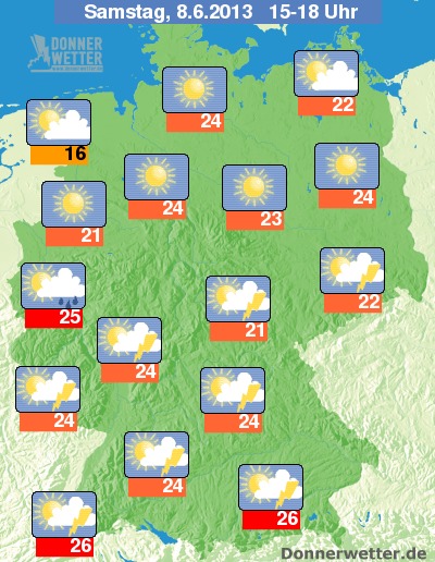 Wir starten in ein sommerliches Wochenende! Morgen scheint in weiten Teilen die Sonne, in der Südhälfte können sich ab dem Mittag Schauer und Gewitter entwickeln. Am Sonntag sieht es im Norden und Westen schön aus, von Baden-Württemberg bis Sachsen ist es häufiger bewölkt, dazu kann es kräftige Schauer und Gewitter geben.