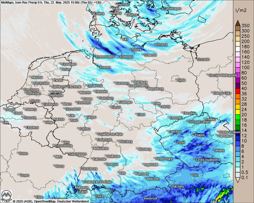Die 6-Stunden-Regenkarte nach ICON-RUC für Donnerstag: