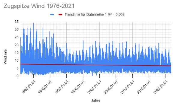 Exemplarisch für unseren Vergleich sehen Sie hier die Datenauswertungen mit Trendlinie für die Flughafen Stationen Köln/Bonn, München, Hamburg und Berlin sowie die Zugspitze.