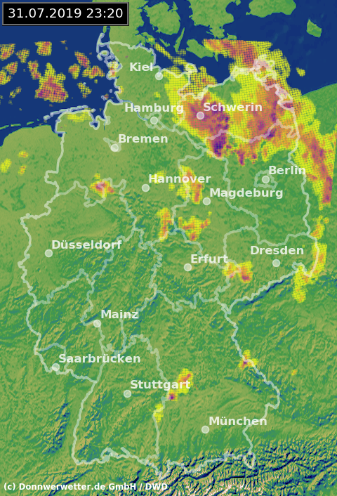 Radarbild von Mittwoch, 31.07.2019 um 23.20 Uhr
