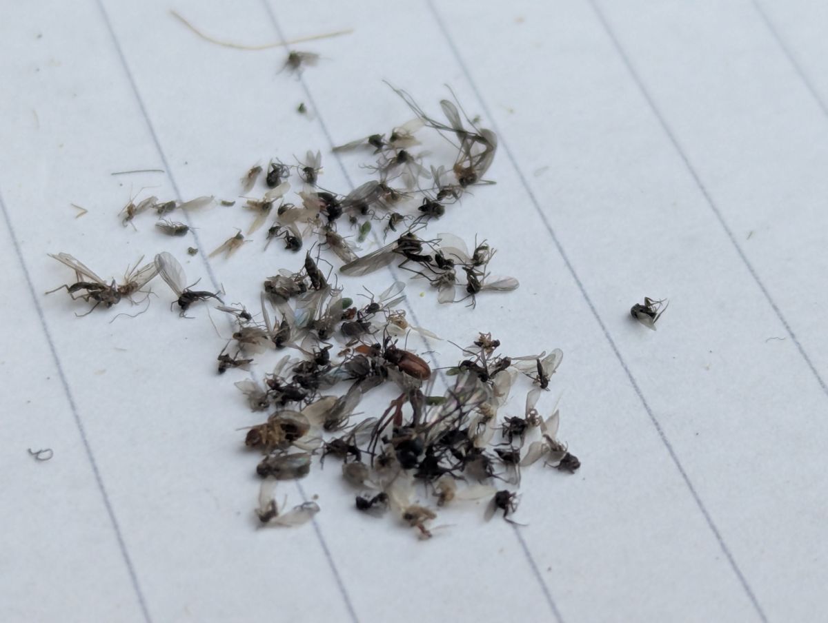 Der große Fang blieb nach der "ersten Runde" aus: Statt der gesuchten Tigermücke landete vor allem „Beifang“ im Sammelbehälter: Drei kleinere Mücken gingen uns ins Netz, dazu in erster Linie Fruchtfliegen.